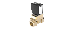 The 5404 valve is a servo-assisted piston valve available in NC and NO versions. Minimum differential pressure is required for the valve switching function. The solenoid coils are molded with high-quality epoxy resin. In combination with a plug to DIN EN 175301-803 Form A, the valves satisfy the degree of protection IP65. The plug is not included and must be ordered separately.