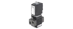 The Type 5420 is a pilot-controlled 4-way seat valve with servo-diaphragms. A minimum differential pressure of 2.5 bar is needed for switch-over. The valve can be mounted on two-channel manifolds with a common pressure supply.