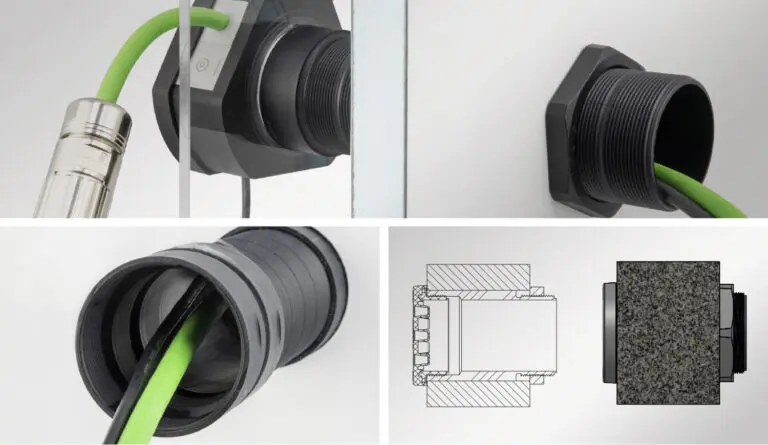 The icotek thread extensions offer a practical solution when the thread lengths of the icotek cable glands or entry plates are insufficient, for example when mounting on sandwich panels or thick concrete walls.