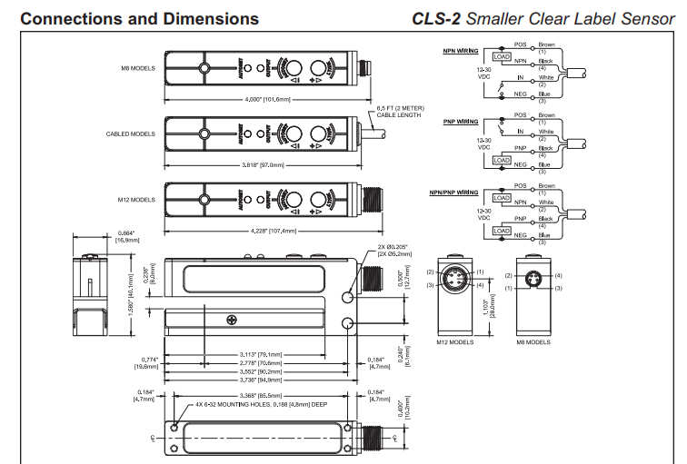 • Red LED Output Indicator– Illuminates when the sensor’s output transistors are “ON”.