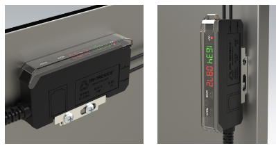 The Plastic Fiber Sensor answers the need for a more affordable sensor suitable for most applications. The PFS will easily replace most general-purpose plastic fiberoptic amplifiers without sacrificing key features. This sensor still features our signature fast setup method with a one-button setup to teach the sensor and set the threshold. It has a dual 4-digit display, one in green and one in red, to display the threshold and returned light level. Two buttons for manual threshold adjustment, diffuse or through beam selection, four response times settings, and up to 5000ms of output, and delay are included. The slim line 10mm wide housing with a protective lid will fit in a variety of small spaces.