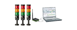 An additional element called the “WIN slave/transmitter” is fitted to the KombiSIGN signal tower. This transmitter transfers machine status information wirelessly to the “WIN master/receiver”. The “WIN master/receiver” is connected by USB to a PC and can receive data from up to 50 “WIN slaves/transmitter” each reporting a maximum of 8 different status conditions.