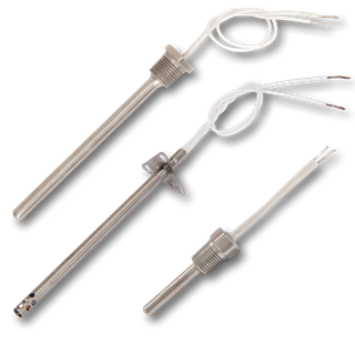 Resistance Temperature Detectors (RTDs) are temperature sensing devices consisting of a wire coil or deposited film of pure metal. The element’s resistance increases with temperature in a known and repeatable manner.