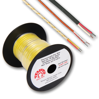 Thermocouple Wire and Cable: Tempco can supply many types and gauges of thermocoule wire and thermocouple extension wire including mineral insulated. Common sizes are stocked on 100 and 250 foot spools.